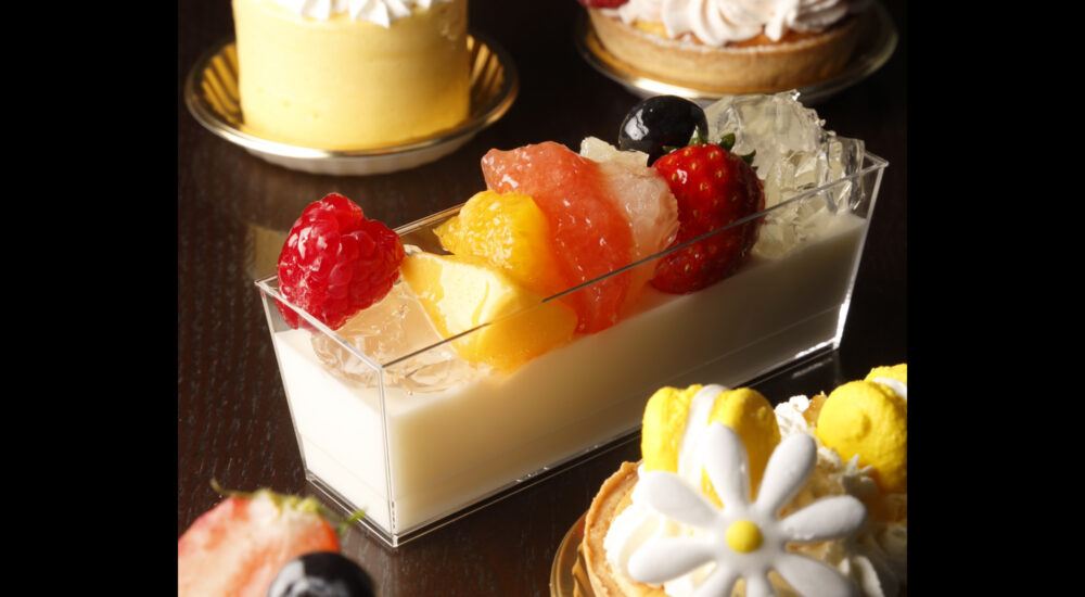 - A cafe that is popular for its cute and gorgeous sweets,mainly using locally grown fruits. There are always 12kinds of sweets available, including strawberry tarts,cheese tarts, and mango mousse. This cafe’s newest creation is Kunimare Blancmange (photo center ¥380).Instead of Western liquor, Kunimare, a famous sake from the town of Mashike, is used. Decorated with strawberries, mangoes, and raspberries, it is fruity treat for grown ups.