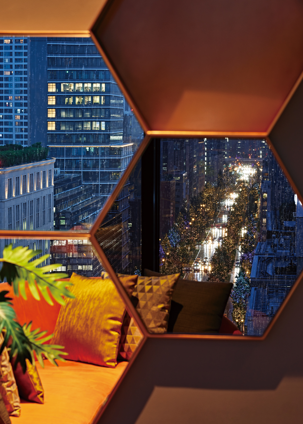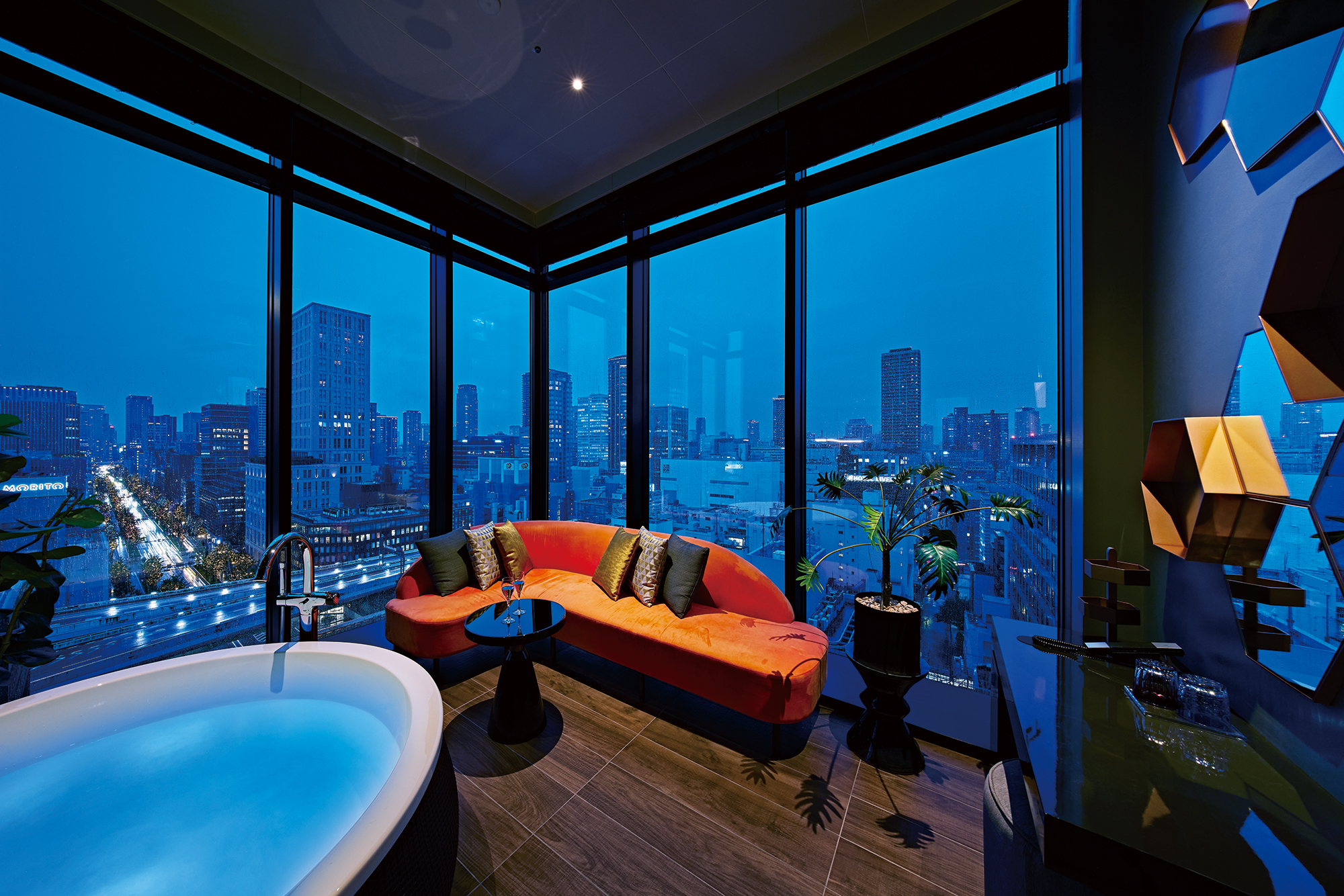 - As night deepens, the lights of Midosuji grow brighter, this year shining every evening from April in honor of the World Expo. Seen from the sofa, with raindrops softening the view, the boulevard sparkles like a scene from a film. Put on some jazz, raise a glass, and let the glow of the city frame a truly unforgettable night.