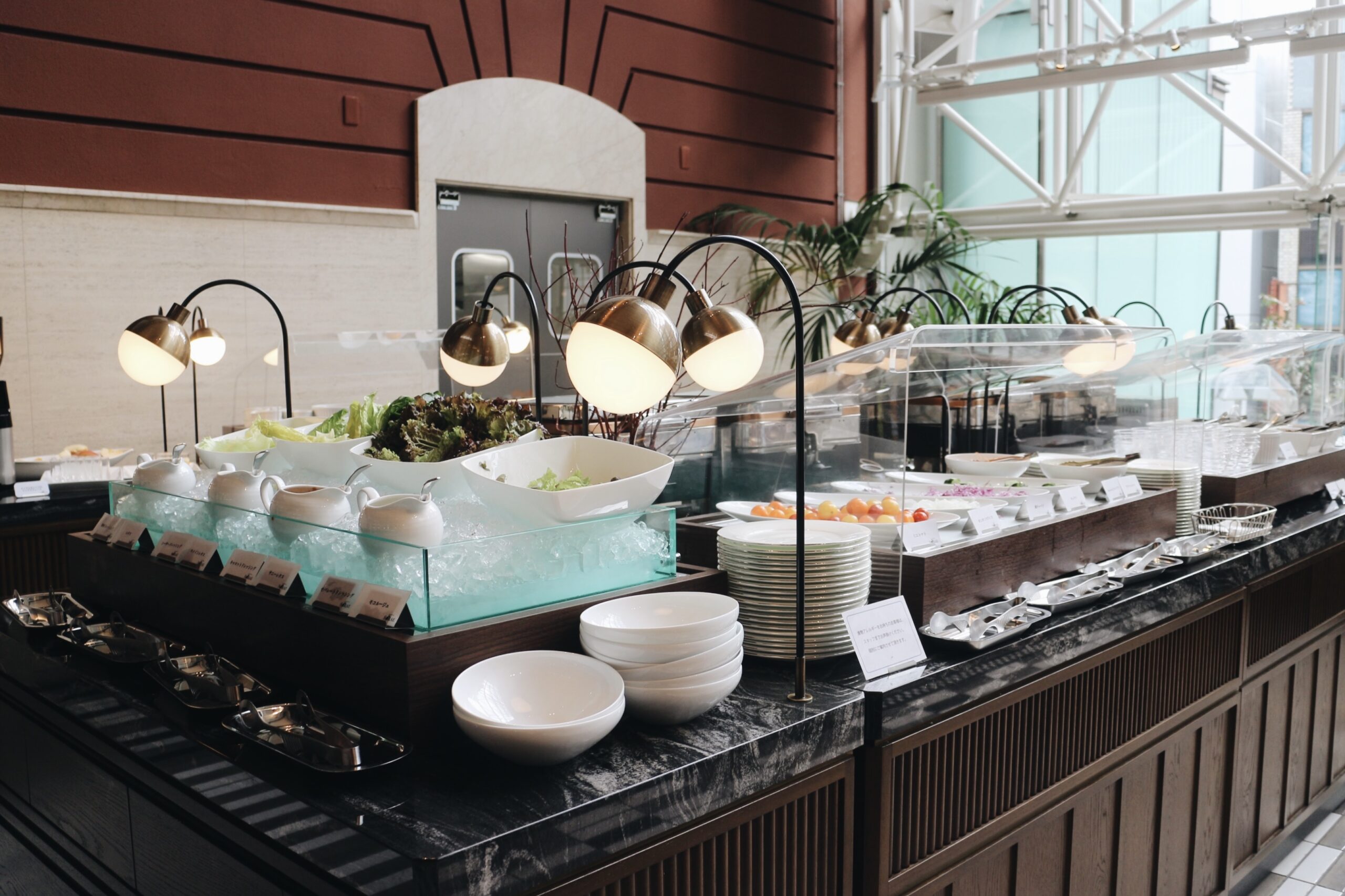 団体で利用できる個室席は、ホテルならではの広々として落ち着いた空間。 - 季節の野菜を堪能できるランチブッフェや、ワインに合うシャルキュトリー各種を楽しめるディナー、アフタヌーンティーがいただけるカフェタイムと、朝食以外にも立ち寄れる「SORAE」。