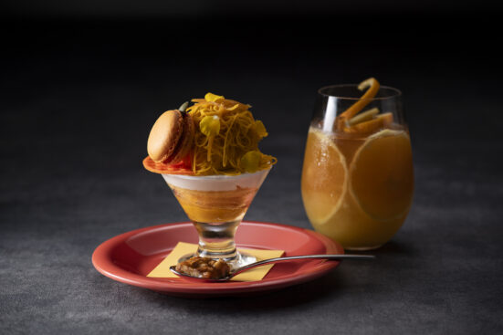オレンジシロップのスポンジをベースに、ヨーグルトのシャンティやリンゴ、カボチャクリームで仕上げたモンブランパフェとオレンジ×紅茶の爽やかなカクテルのセット。見た目もかわいい秋の味覚を詰め込んだスペシャルセットをお楽しみください。