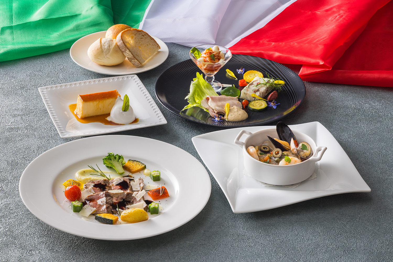 昨年もご好評をいただいたイタリアンランチコース。今年は、季節の食材を活かし秋の始まりにふさわしいメニューをご用意いたします。人気のサラダビュッフェとともに、お楽しみください。