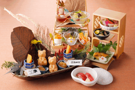 和食「からまつ」の人気企画「和のアフタヌーンティー」。今回はかぼちゃや栗、松茸など秋を感じられる食材を取り入れたメニューでご提供いたします。中でもおすすめは、札幌の老舗和菓子屋「美好屋」の「くまもなか」と「スイートポテト」。北海道産素材にこだわっており、七輪で炙っても美味しく召し上がれます。他にも、秋の味覚をご堪能いただけるスイーツやセイボリーをご用意いたします。秋ならではのアフタヌーンティー体験をぜひお楽しみください。