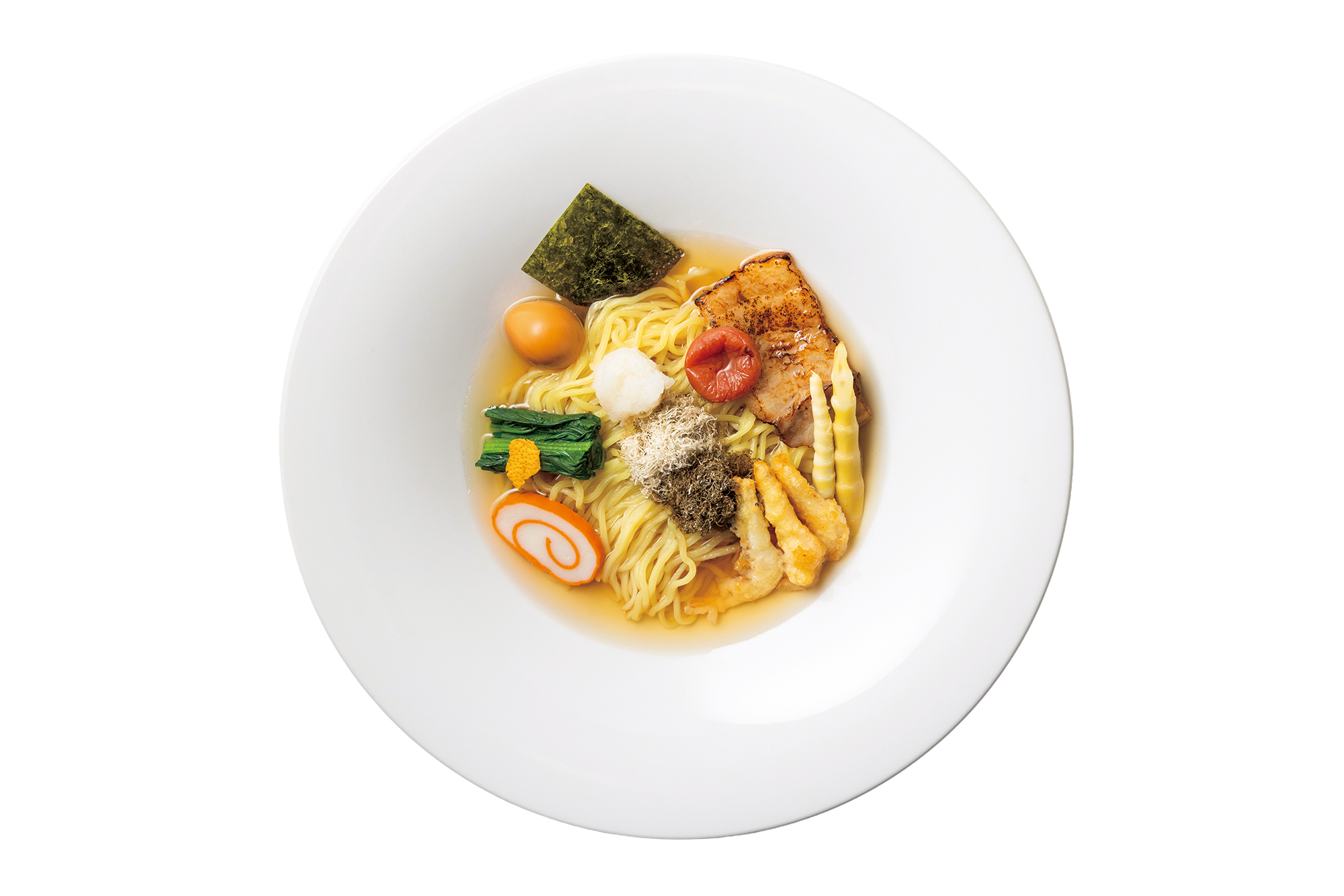 「スープには100匹以上の白えびの頭や殻をじっくり焼いて引き出した風味と旨みが詰まっています。フレンチの技を活かし、鶏ガラや野菜も加えたコンソメをベースに、塩味で仕上げました。上品で軽さも感じるすっきりした朝ラーメンです」(東料理長)