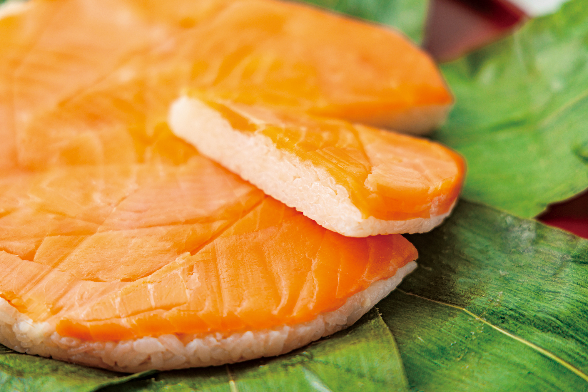 鱒の薄紅色と笹の緑が目にも鮮やか