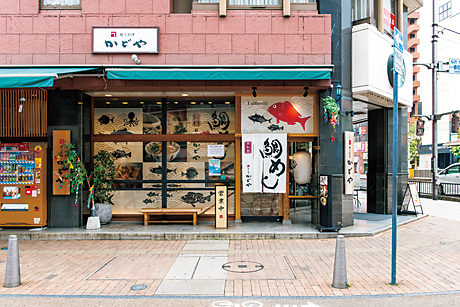 - 「郷土料理かどや 大街道店」は、松山市の中心市街地である一番町交差点の、文字どおり「かど」に立地している。このお店では、「元祖」宇和島鯛めしを味わえる。というのも、ここは60年前から宇和島で市民に親しまれ続けている老舗の支店なのだ。使用している宇和島のブランド鯛「伊達真鯛」は、豊後水道に流れ込む黒潮のおかげで、脂のりがよく、甘みがあり、もちもちとした食感が楽しめる。よく冷やした鰹ベースの出汁と愛媛県内子(うちこ)産の玉子をかき混ぜて、そこに鯛を加え、あつあつのご飯に乗せていただこう。