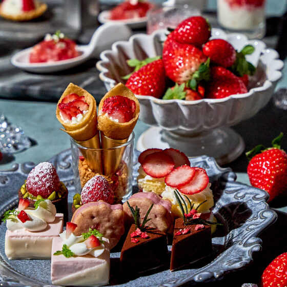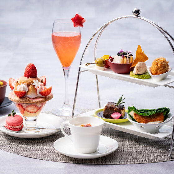~Strawberry Romance~(ストロベリー・ロマンス)~ - フレッシュいちごの食べ比べや苺カヌレ、苺マカロン、ジュレ、タルトなど、多彩なスイーツとセイボリーを組み合わせた冬限定のアフタヌーンティーが登場。苺の魅力を熟知したシェフとペストリーシェフが、いちごソムリエとして培った知識を生かしつつ“そっと寄り添うように”全体のバランスを監修。まるで苺が紡ぐロマンティックな物語に迷い込んだような、甘くやさしい世界観をお楽しみください。