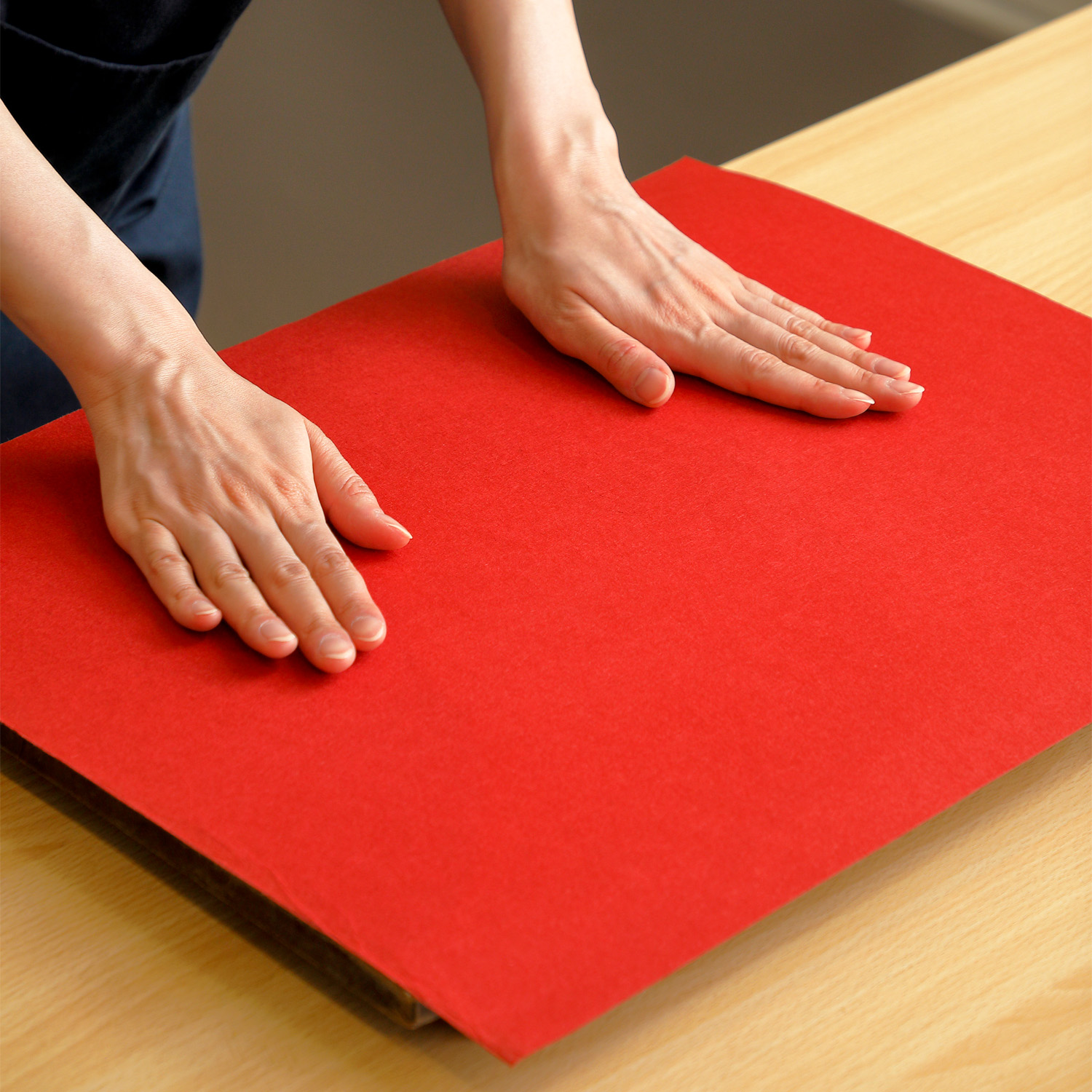 乾燥後、ゆっくり和紙をめくる。台紙をあて、表紙にしたい文様の部分を決める。