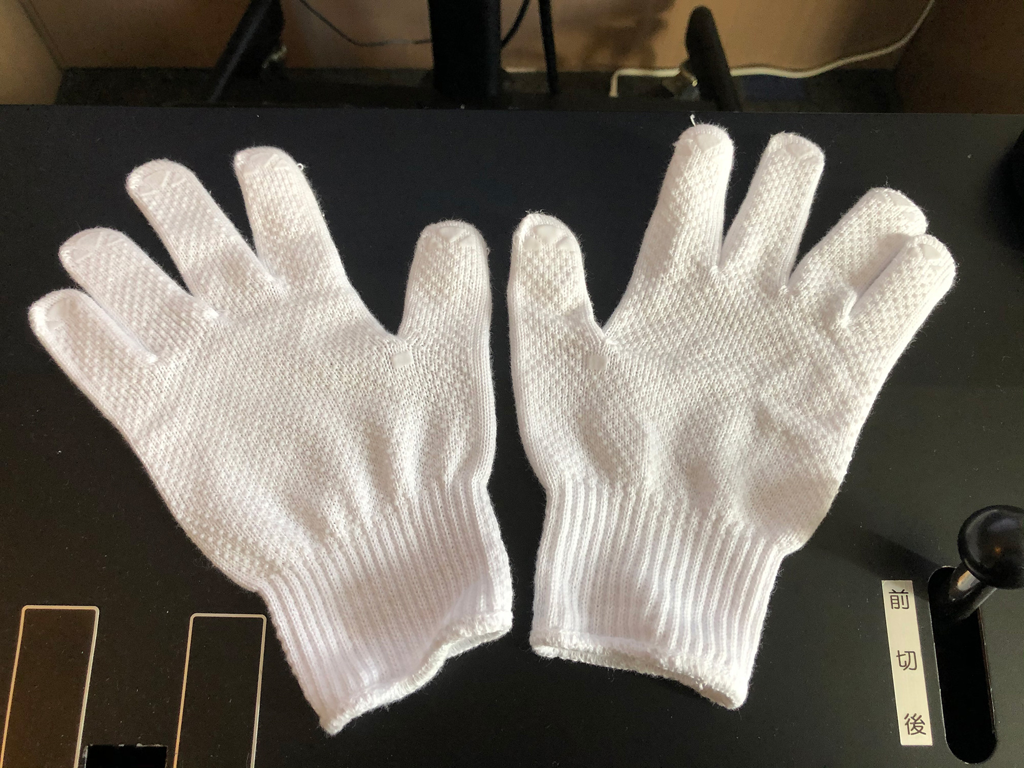 - 最後に手袋。現在はコロナ対策という意義もあり、白手袋がセットされています。実際の運転士さんは手袋は必携品で、乗務中は手袋をはめて運転されるので、ハンドルを手袋ごしに にぎるとき本物の運転士さんになった気持ちになり、気合が入ります。この手袋、鉄道会社によって手袋の素材が異なるのですが、東急電鉄で使われいる素材に近い手袋が用意されているので、本物感がより一層増します。