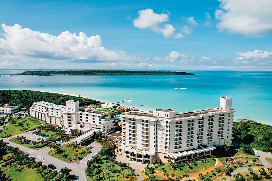 - 東洋一美しいと評される与那覇前浜ビーチを望むリゾートホテル。釜炊きご飯などを使ったこだわりの朝食が楽しめる「やえびし」や、約7000枚の貝殻で作られたシャンデリアが南国ムードたっぷりの「ムーンシェル」などレストランやバーが充実。「美と生命のTHE ISLAND SPA ゆるりあ」では、月桃(げっとう)や海泥(かいでい)など天然素材を使ったトリートメントが心身を癒やしてくれる。天然プラネタリウムツアーをはじめ、サンセットクルージング、ウェイクボード、ペダルサップなどアクティビティも豊富にラインナップ。美しい海と夕日、星空とともに非日常を演出してくれる。
