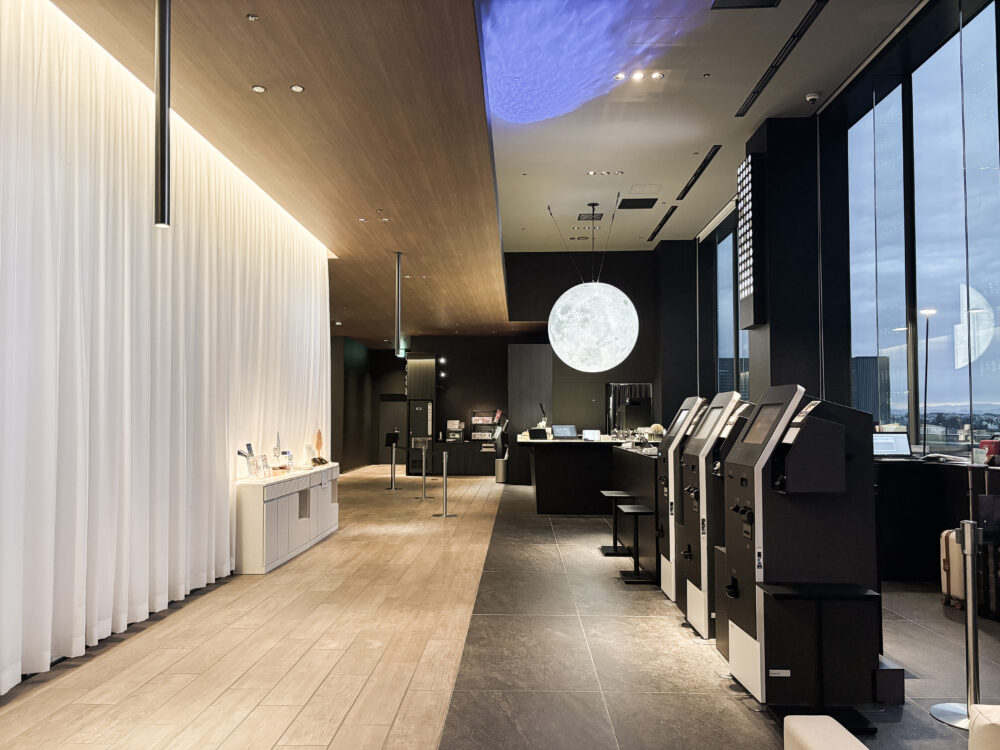 - ホテルコンセプトは、「WARP(ワープ)」。古き良きから、新しさまで、さまざまなものが集い交差する横浜という街ならではの魅力を表現するべく、各所に工夫が施されていた。ロビー天井に浮き上がるプロジェクションマッピングも、それを象徴する表現の一つだろう。
