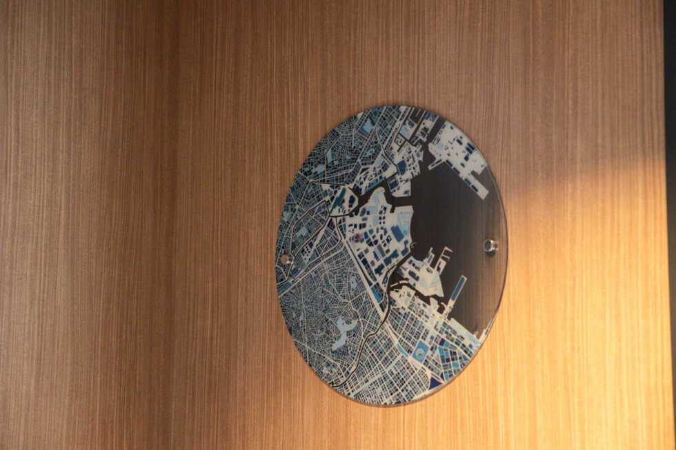 - ベッドサイドの読書灯も愛らしいデザインだったり、壁を見てみると、横浜ベイエリアをモチーフにした地図のアートが飾られている。ちいさなところに遊び心あふれており、客室内を見回していると、次々と発見があるのがおもしろいポイントだ。