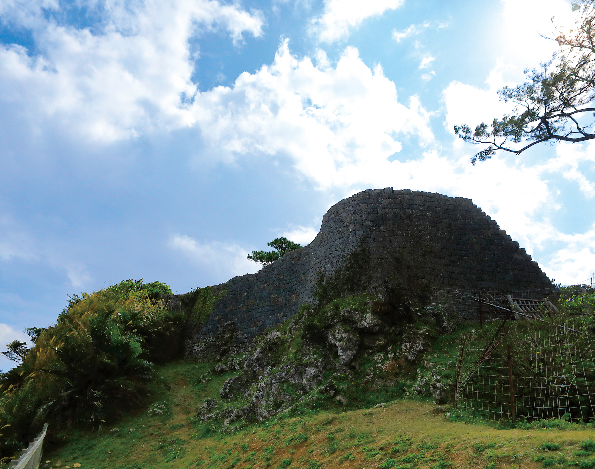 13世紀に築かれ、14世紀には高麗系瓦ぶきの正殿を中心に、石積み城壁で囲まれた大規模なグスク(城)。後の王都首里の原型がここでできあがった。