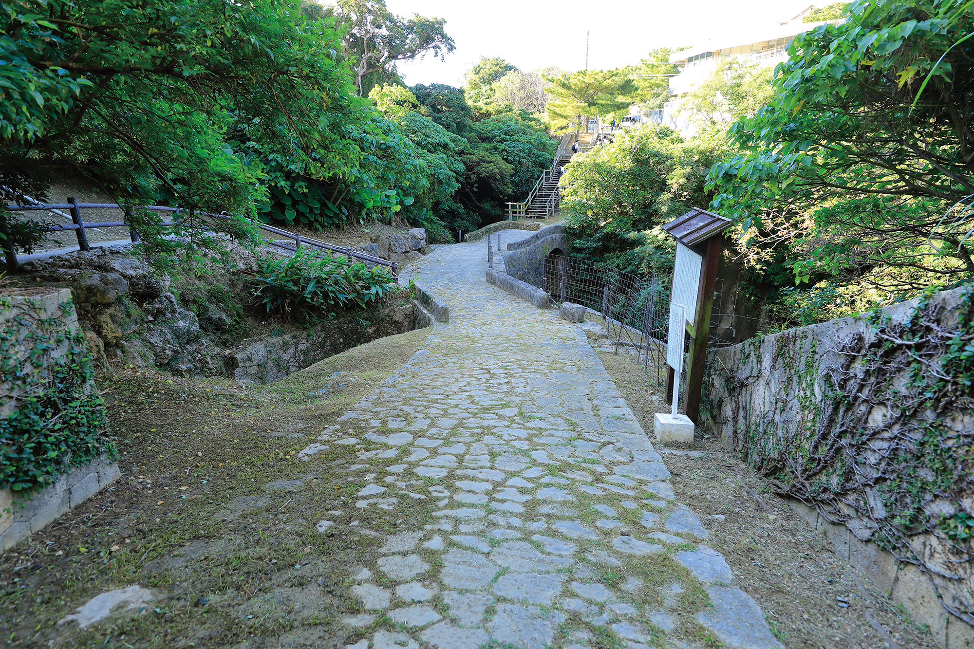王府からの命令伝達や、納税のために造られた。「公事道」とも呼ばれる。首里城を基点に浦添城を経て、読谷、さらに恩納や国頭へ至る道。石畳に往時の面影が残る。
