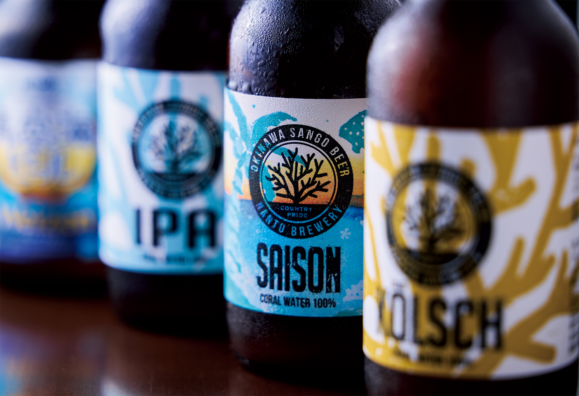 サンゴでできた鍾乳洞の地下水「コーラルウォーター」でつくられたクラフトビール「OKINAWA SANGOBEER」もラインナップ。